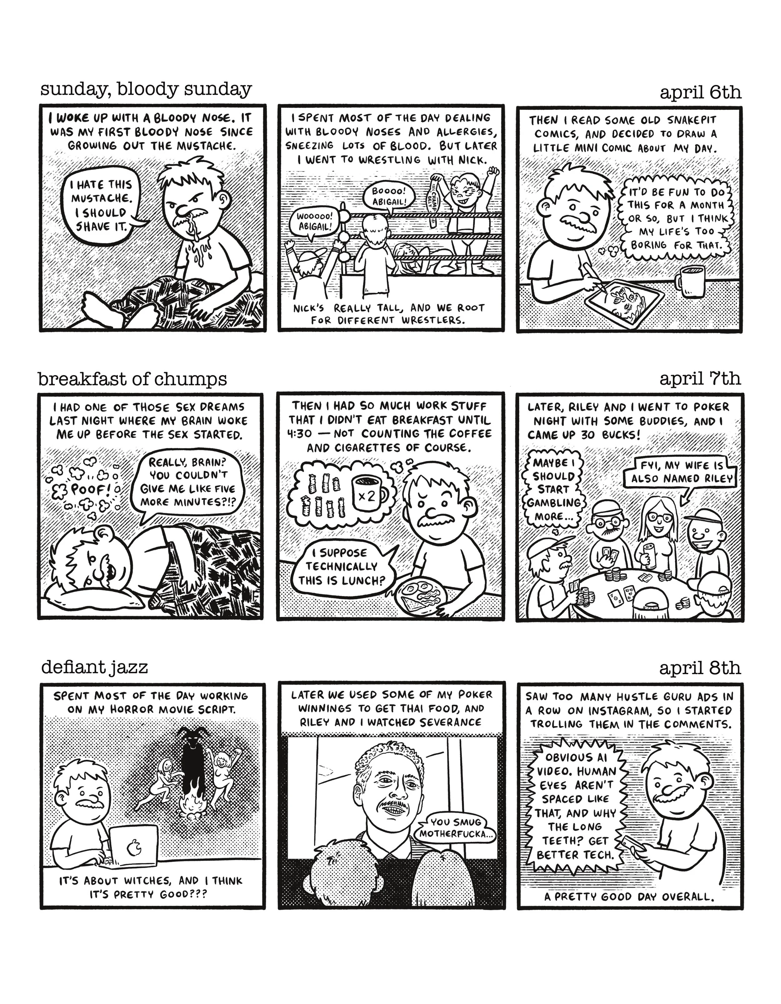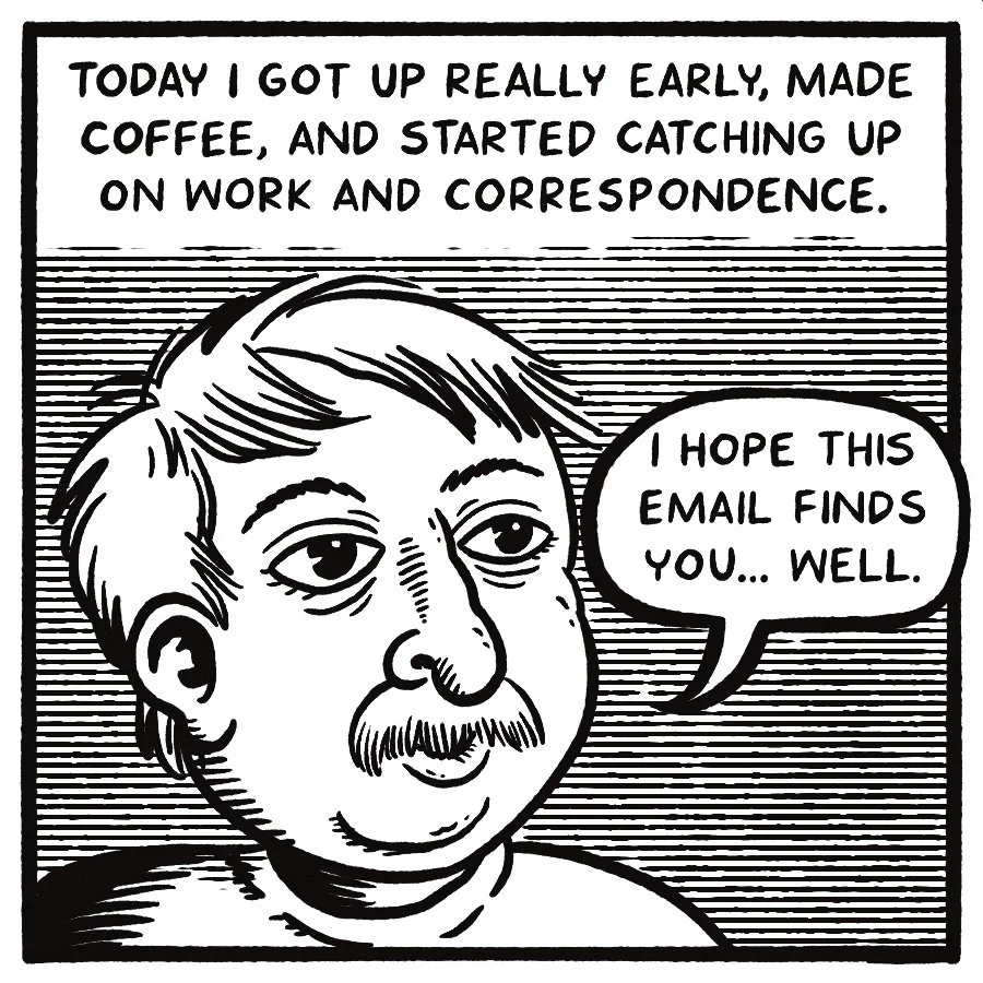 This nonfiction comic follows the ins and out of my daily life for about two months, starting in April 2025. A funny, mundane, and often philosophical slice of life story about an aging artist turning his focus inward to examine the thrust of his own existence.
